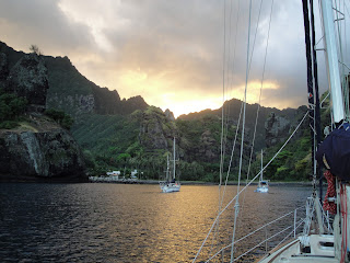 Our first view of Tahiti was from 65m out and an amazing sunset over the island. Upon arrival we motored to the anchorage at Maeva Beach. The autopilot was still giving us problems so after a couple of days we went to to town quay in the center of Papeete. We attempted to get the local dealer to fix the problem but thay seemed to have less idea than us!